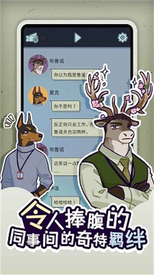 动物公司是一款很独特的文字风格互动视觉小说游戏,这里有不同的背景故事和性格特点,为玩家提供了很多互动体验。在这里玩家要融进这个充满活力的团队,可以通过完成任务去探险隐藏的元素,解锁更多的内容和奖励,提升游戏体验。短信不仅有丰富的情感表达,也隐藏着各种线索和谜团,等待玩家来挖掘和解读。