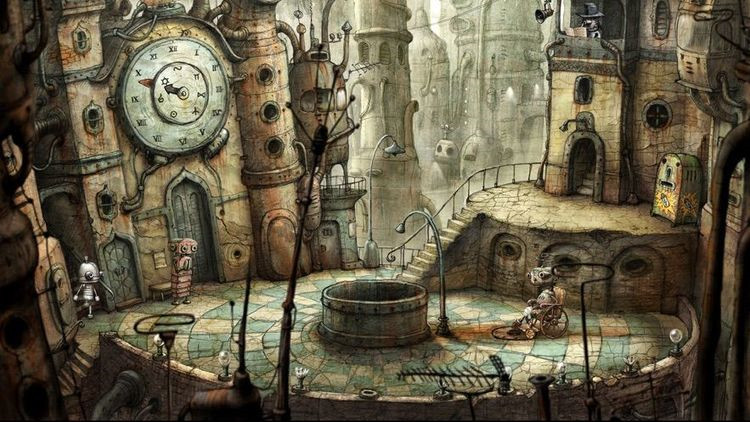 一个游戏成功与否,通常在于能否营造出一种适当的气氛让玩家融入,除了画面以外最重要的就是配乐了。 《机械迷城》的配乐是由Floex编制和录制的,同时也是《银河历险记(Samorost 2)》原声带的作者,相当优美且具深度的曲子,始人仿佛进入了一个机械城般的感觉。