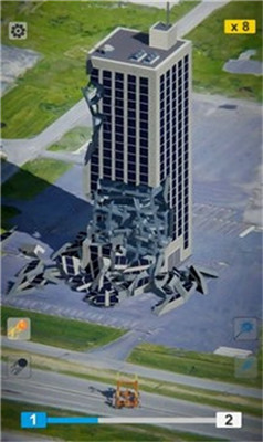 3.在游戏当中玩家们要做的事情很简单,那就是摧毁大楼,让你面前的大楼全部塌落。