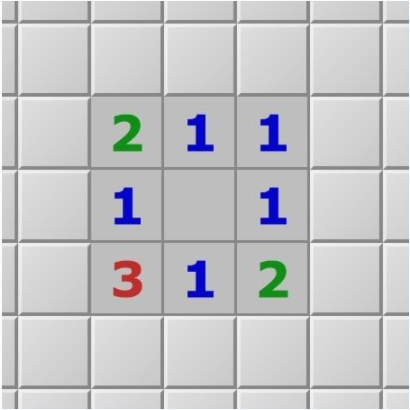 下面是一些扫雷定式,可以快速推断雷的位置。