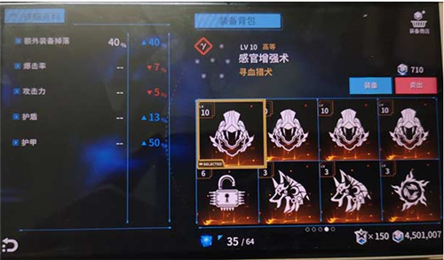 2、前期建议以攫取资源为主(即ARK),如果你脸够白,第一章前3关能掉出1级感官增强术(增加25%额外装备掉落概率),中期会掉落10级感官,掉落率高达40%。不要犹豫,直接装上,可以一直保留到终焉之光前所有关卡。脸再白一点,极大概率掉出所有顶尖ARK,越往后掉落出的级别和质量越高,装备太满了就删一些低级的。然后你就可以随心所欲搭配了。