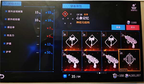 3、如果前期想纯发育路线,还可以考虑有奈米币加成的装备也装上,毕竟前期奈米币少,如果想到装备商店更换芯片,花费还是不少的。下图为16级的心象记忆,前期低等级的只增加奈米币,不增加经验。(装备商店的装备性价比较低,过度一些瓶颈期可以,但不要执着。本人不建议一直买,后期你会发现奈米币多到你用不完)