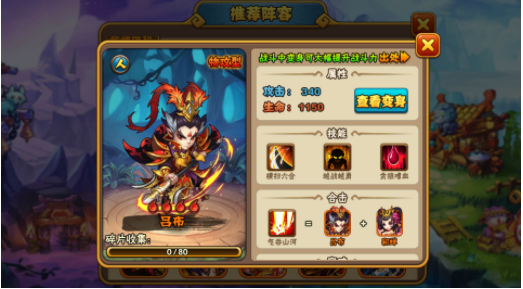 阵容是可以选择合击技能的,解锁合击才是最关键的,玩家可以去二级锁不同的合击技能,输出就会高很多的。吕布和貂蝉就可以解锁合击,然后有羁绊的武将都是可以解锁合击的,就是技能的加强,算是最终的大招,输出能力都不会太差。