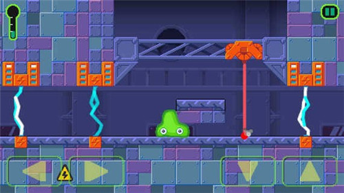 第3关:这一关开始吞噬液体可以将柱子撞断,然后尽量躲避那些激光,可以躲避在石头下面跳跃的时候多观察激光的路线。