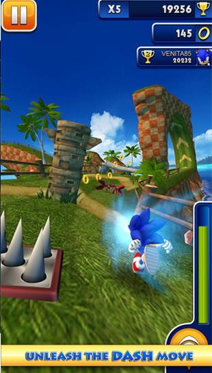 索尼克冲刺是一款3D酷跑游戏。游戏中玩家要操控索尼克或者其他小伙伴快速穿越过各种障碍,击败拦路的怪物,通过考验取得胜利。在索尼克的世界里,极速没有极限,想多快就多快。每日参加活动日常和挑战可以获得丰厚的奖励,在这精致的画面亲临索尼克的世界,尽情享受别样的酷跑乐趣,感兴趣的朋友快来加入索尼克世界,一起来冲刺吧!