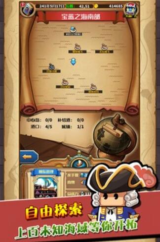 小小航海士是一款非常好玩的休闲游戏,在游戏里玩家要通过买卖商品和完成委托来赚取资金,还要安排每艘船的各个船舱进行工作,同时要率领舰队去探索未知的海域,寻找更多有价值的神秘宝藏。探索自由,开放式海域,在广阔的大海上,是经常会遇到怪物的,所以要注意每一场战斗和各种随机事件的发生。还有就是要特别注意水手的消耗,没有食物和水的话就会消失在这片大海里。