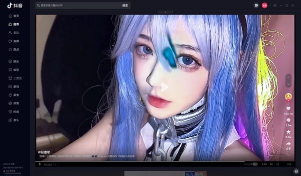 打开软件后,整体界面和抖音网页版类似,可以通过键盘方向键,或者鼠标滚轮切换视频。