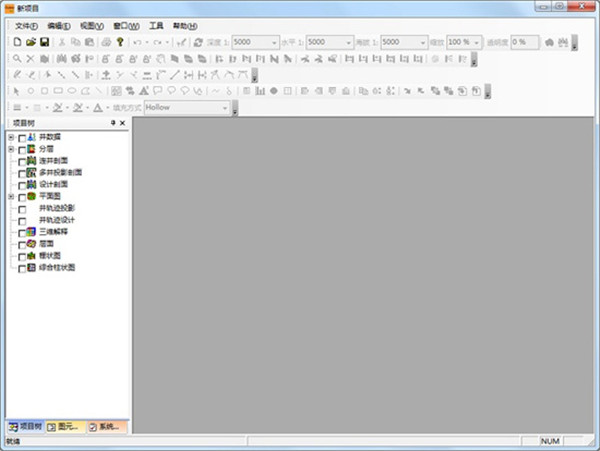 1、进入软件的主界面,项目对包括了井数据、分层、连井投影剖面、设计剖面、平面图等;