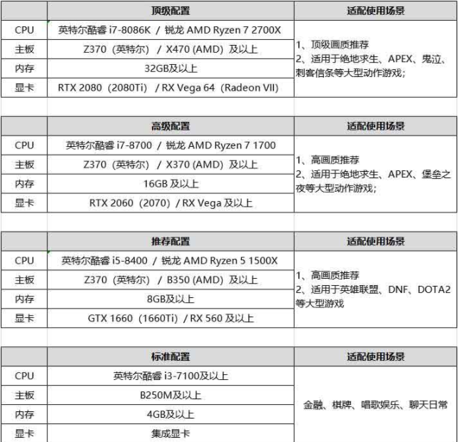 首先,你需要一台电脑来直播,我们以目前热门游戏英雄联盟、DOTA2、绝地求生等为例,推荐机器配置。