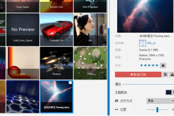 你可以在创意工坊中意的作品下点击「订阅」以下载壁纸,或者直接在 Wallpaper Engine 主界面点击「创意工坊」列表浏览并下载中意的壁纸。