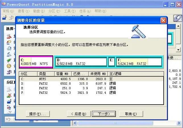 在接下来的“分区属性”界面中,在这里为新分区设置大小和分区格式及盘符与卷标选择设置即可。由于我们是平分分区,所以默认即可,单击“下一步”按钮就可以完成分区了。